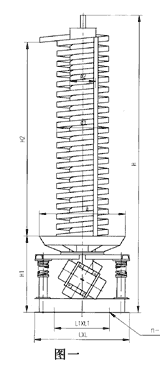 ZC系列垂直振動輸送機(jī)的驅(qū)動裝置振動電機(jī)安裝在輸送塔下部,兩臺振動電機(jī)對稱交叉安裝,輸送塔由管體和焊接在管體周圍的螺旋輸送槽組成,輸送塔座于減振裝置上,減振裝置由底座和隔振彈簧組成。 (見圖一)