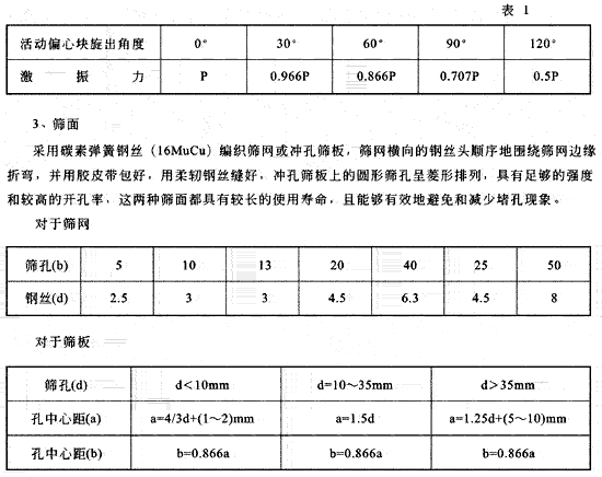 每組偏心塊由固定偏心塊和活動(dòng)偏心塊組成,只要改變活動(dòng)偏心塊對(duì)固定偏心塊在圓周方向的相對(duì)位置,使可以改變偏心塊的合成偏心距,進(jìn)而調(diào)整激振力的大小,使用時(shí)可根據(jù)現(xiàn)場(chǎng)需要,調(diào)節(jié)激振力到所需位置,如表1所示。