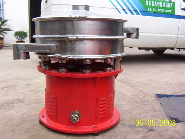 GD型圓形旋轉(zhuǎn)振動篩是一種篩分設(shè)備。該機由底座上的普通電機通過橡膠聯(lián)軸器帶動激振器轉(zhuǎn)動,使篩機產(chǎn)生水平運動和繞水平軸搖擺振動的空間復(fù)合運動。篩中料層受剪切,并上下翻該,細顆料迅速接觸篩面,過孔分級。