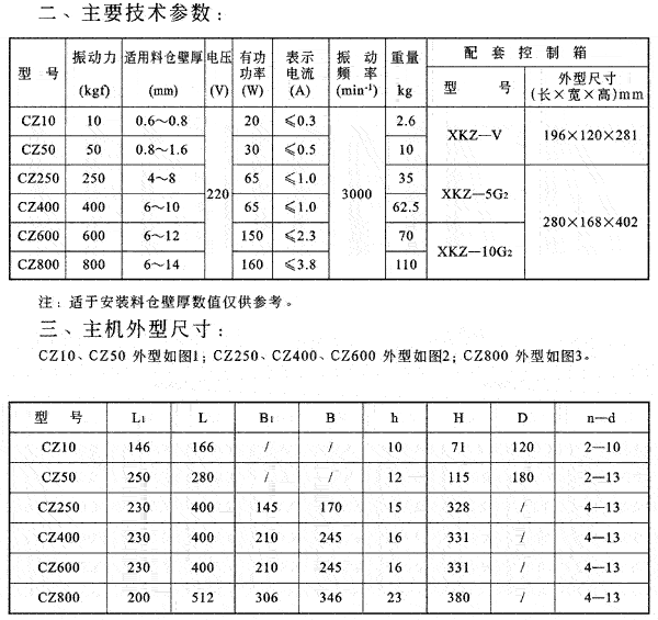 CZ型倉壁振動(dòng)器由于采用了近共振原理,具有體積小、壽命長(zhǎng)、耗電量小,結(jié)構(gòu)簡(jiǎn)單,安裝方便的特點(diǎn),它同附加攪拌翼;送入脈動(dòng)壓縮空氣等解除,“堵塞”“搭拱”方法相比具有設(shè)備費(fèi)用低、維修量小的優(yōu)越性。CZ型倉振器對(duì)粘性物料的破拱能力將會(huì)顯著降低。